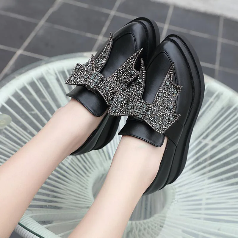 (34-39) женские туфли на высоком каблуке, стразы, бант женские туфли-лодочки на танкетке повседневная обувь с острым носком, на толстой подошве, черного цвета, To-029