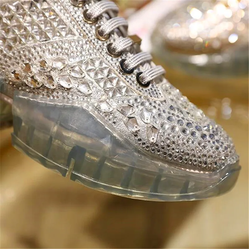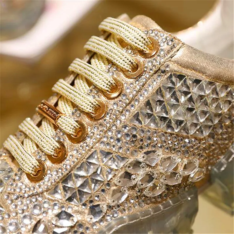 Женские кроссовки из натуральной кожи, со стразами и круглым носком, на платформе