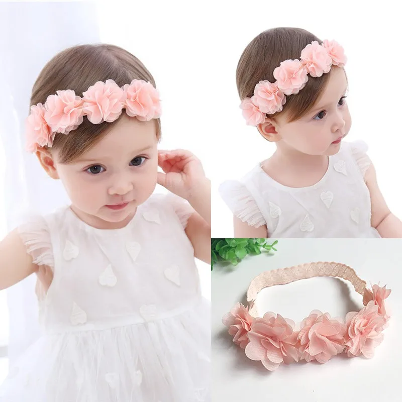 Горячие детские цветочные повязки на голову розовые Ленточные резинки для волос ручной работы DIY головные уборы аксессуары для волос для детей новорожденных малышей