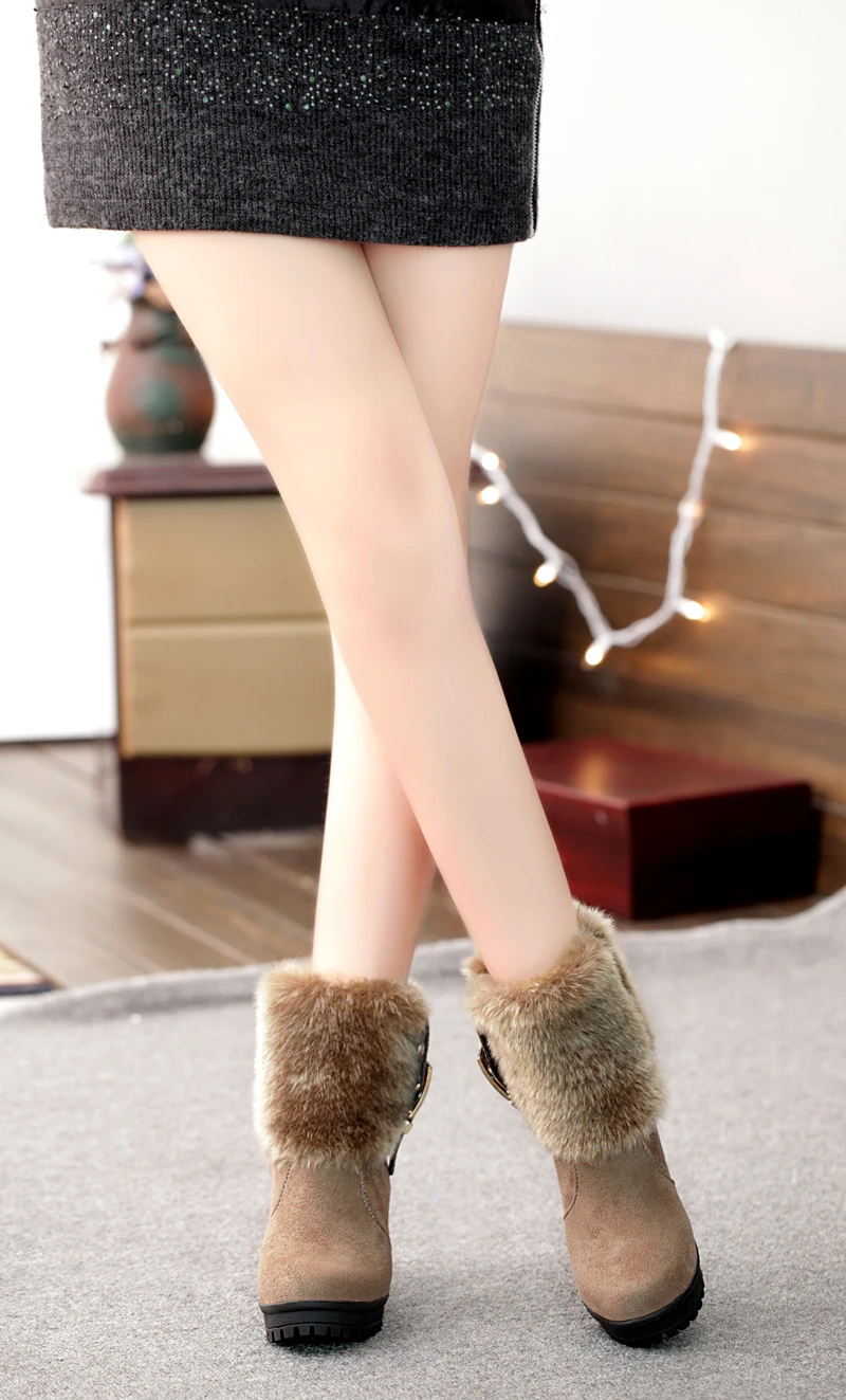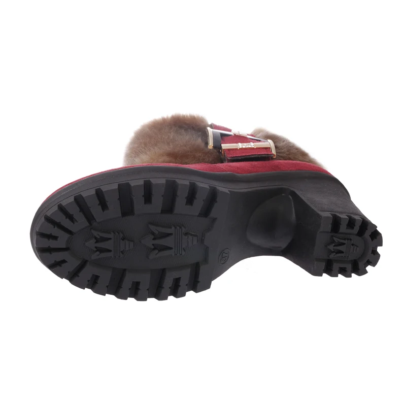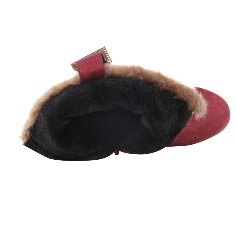 Женские замшевые ботинки со стразами черные на плоской подошве теплая зимняя