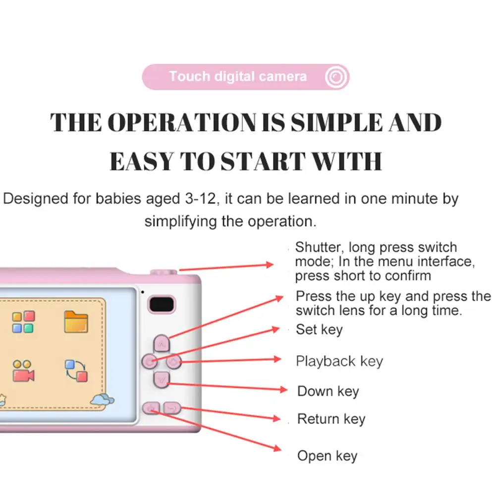 Точки пули:1. Ультра-мини размер, подходит для маленьких детей; Очаровательные мультфильмы и яркий цветной дизайн, это вдумчивый подарок для детей, это волшебная камера, которая открывает интеллект, чтобы развивать наблюдение и открытие детей.2, оснащенный 2,8-дюймовый IPS дисплей высокой четкости, полный вид сенсорный экран камеры может быть увеличено, вы можете настроить ваш любимый состав, Поддержка карт памяти: поддержка 4-32 Гб (не входит в комплект). Снимайте идеальные фотографии и записывайте яркие видео.3. Зарядка 2 - 3 часа, время работы: 3-5 часов, простые кнопки, очень удобно для работы детей; Дети могут легко делать интересные фотографии и записывать видео с помощью этой цифровой камеры.4. Эта детская камера изготовлена из экологически чистого мягкого силикона и имеет ударопрочный дизайн, который подходит для детской кожи. Таким образом, он может предоставить вашему ребенку удобный и безопасный способ фотографировать и записывать видео. Встроенная перезаряжаемая литиевая батарея с usb-кабелем для зарядки для удобства использования.5. Этот детский фотоаппарат автоматически распознает отслеживание лица, позволяя Вашему ребенку оставить самую красивую улыбку. Камера оснащена четырьмя фильтрами, черно-белыми, ретро, неоновыми и ретро-зелеными, добавляя мечтательную тайну работе маленьких фотографов.Параметры:Дисплей: 2,8-дюймовый сенсорный экранТехнические характеристики: около 8,2 × 5,8 × 3,1 см/3,23*2,28 * 1.22inВес: около 95 гХранение фотографий: 300 листов/ГБФункция: фото, видеоВремя зарядки: 2 ~ 3 часаНапряжение зарядки: DC-5V постоянного тока/1 АМаксимальная память: поддерживает до 32 Гб (Этот продукт не содержит карту памяти и должен быть приобретен отдельно)Емкость аккумулятора: 600 мАЗапись Время работы: около 2,5 часовИнтерфейс ПК: USB 2,0Разрешение видео: FULL HD 1920*1080Разрешение фото: 3264*2448Поддержка голоса: китайский, китайский традиционный, английский, японский, корейский, французский и т. д.Список:Детская камера * 1Зарядный кабель * 1Руководство * 1 Ремешок * 1