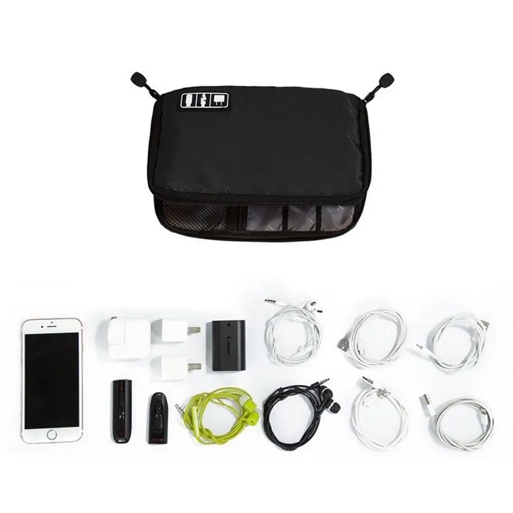 Идеальная Интеграция для цифровых аксессуаров Компактный дизайн, легко носить с собой Изготовлено из водонепроницаемой ткани Оксфорд, очень практично Высокое качество и тонкая работа, это станет вашей жизнью, путешествием и на открытом воздухе хорошим помощником. Пусть ваше мобильное устройство, кабель, USB более упорядоченно. Цвет: черный Материал: нейлон Своего обычного размера: 25*18*2 см Посылка включает в себя: 1 x цифровая сумка для хранения