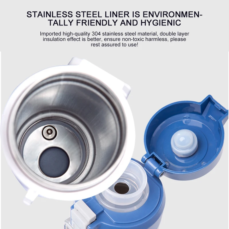 Внутренняя с использованием двухслойной технологии вакуумной изоляции с хорошим изоляционным эффектом, безопаснее пить кипяченую воду. Конструкция крышки замка позволяет избежать попадания воды случайно. Небольшая силиконовая конструкция для воды-это пот и удобно для вас, чтобы безопасно пить горячую воду.