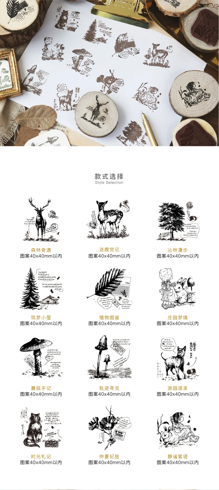Деревянный штамп TUNACOCO Приключения в лесу сделай сам Qt1710154 | Канцтовары для офиса и