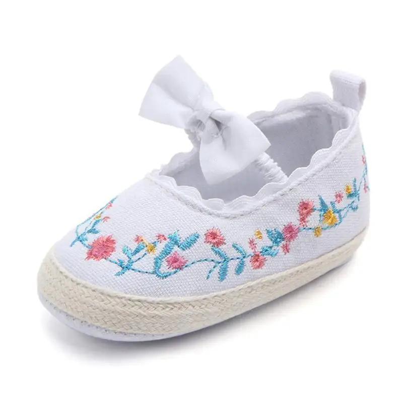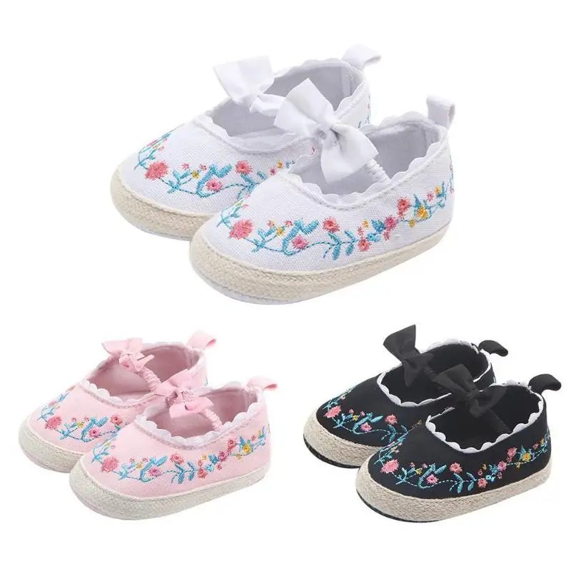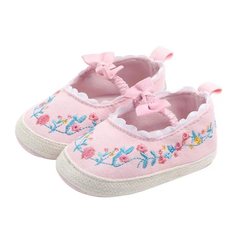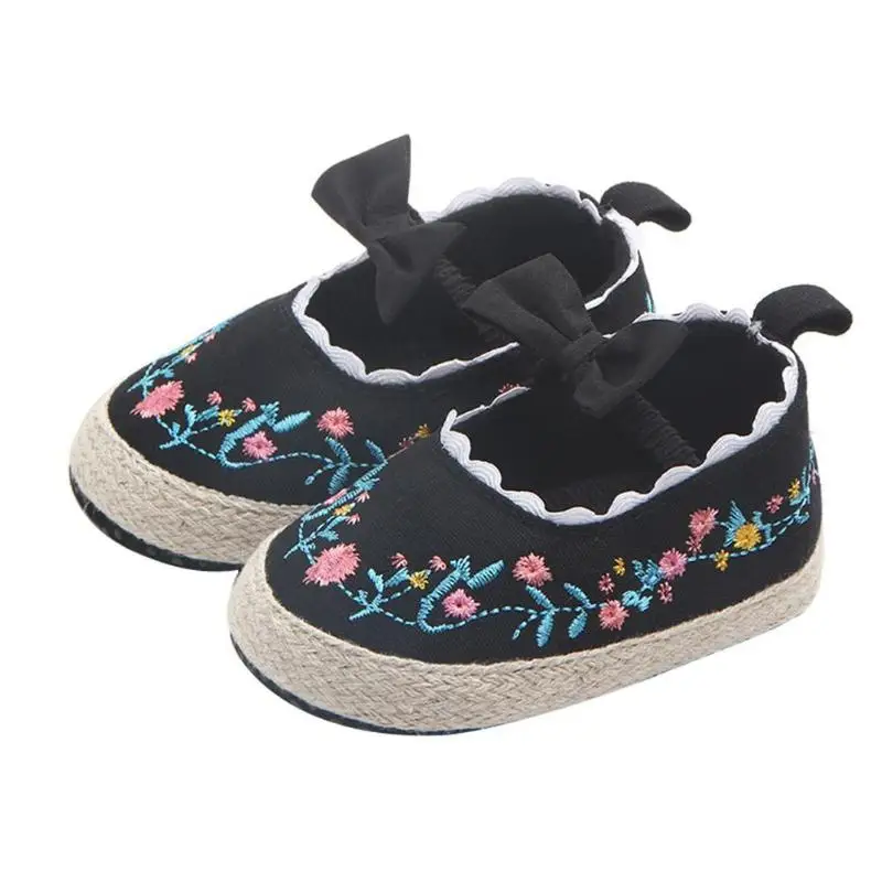 Обувь для новорожденных девочек с бантом и цветочной вышивкой; обувь для маленьких принцесс; обувь для малышей на мягкой нескользящей подошве