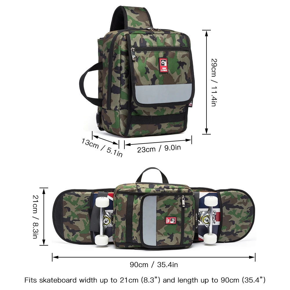 Это сумка 2-в-1, которую можно использовать как слинг-сумку или сумку-переноску для скейтборда, отлично подходит для тех, кто любит Скейтбординг и другие виды спорта.