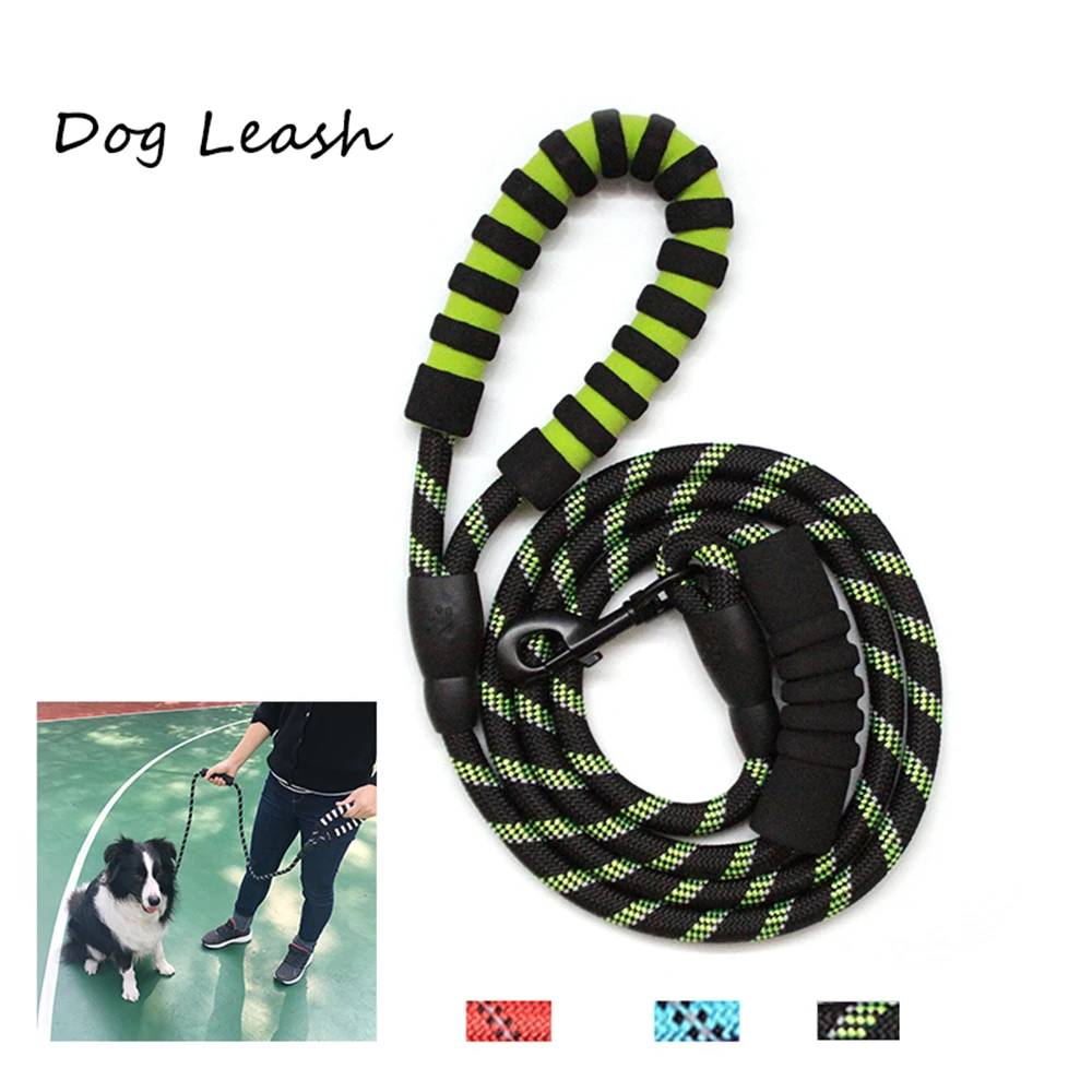 Светоотражающий нейлоновый поводок для собак с двумя ручками, веревка для горного скалолазания, собачья цепь, Тяговый канат для обучения домашних животных, прогулок, бега