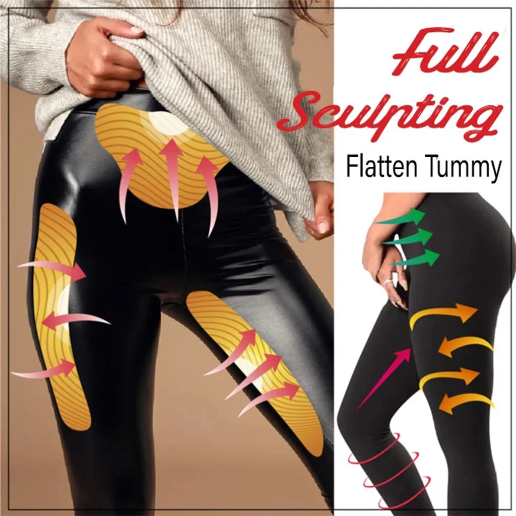 Женские эластичные брюки из искусственной кожи, формирователь с высокой талией для похудения