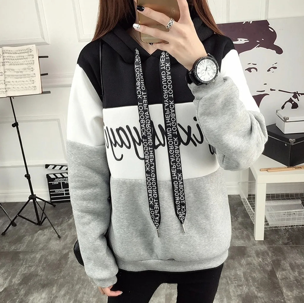 Модный женский пуловер с капюшоном, Повседневная Толстовка с длинным рукавом и надписью