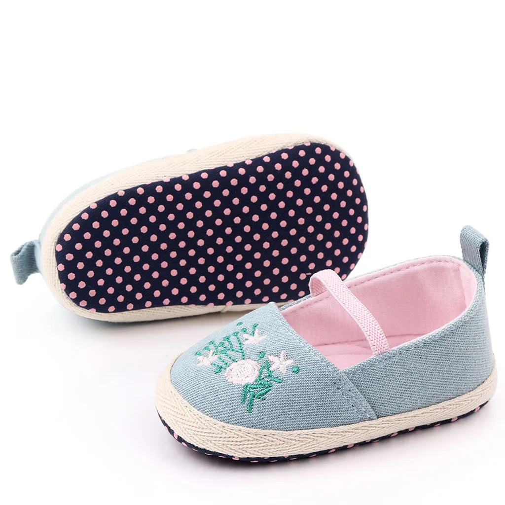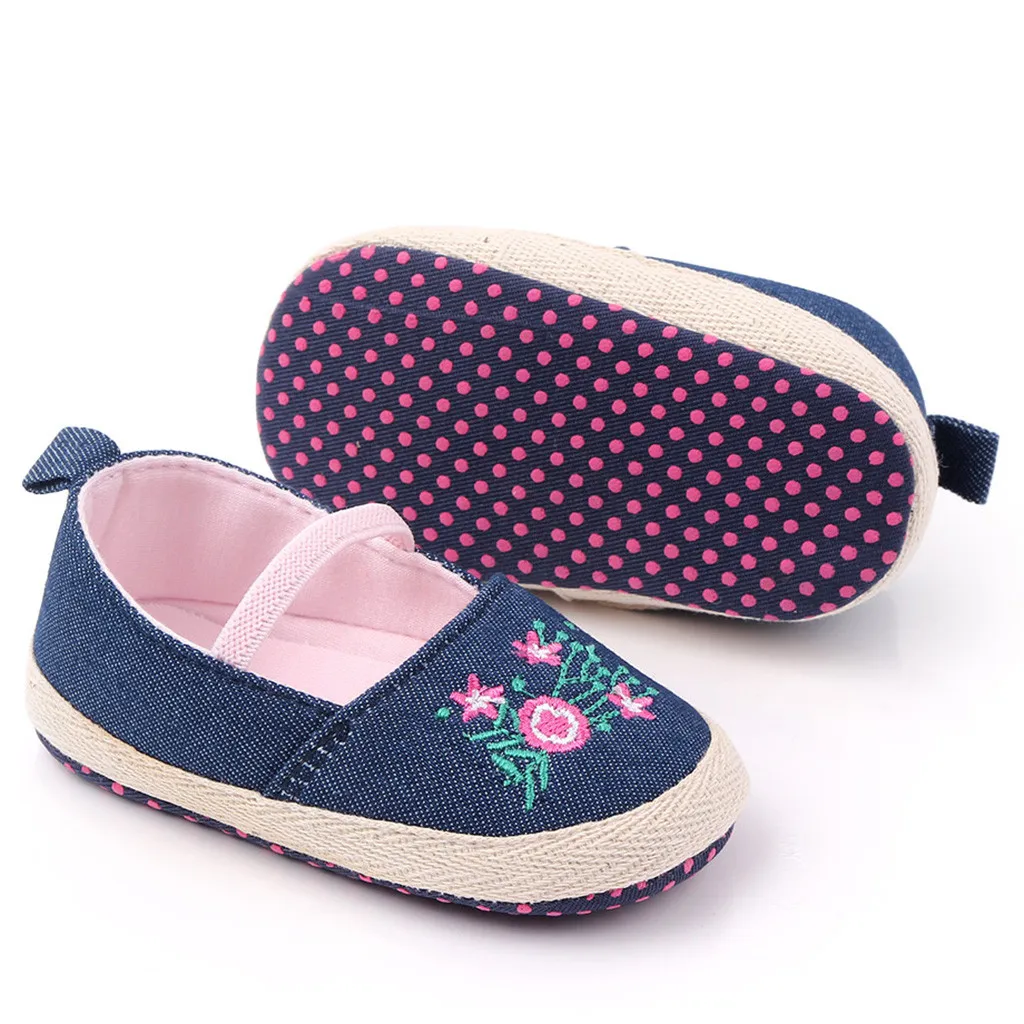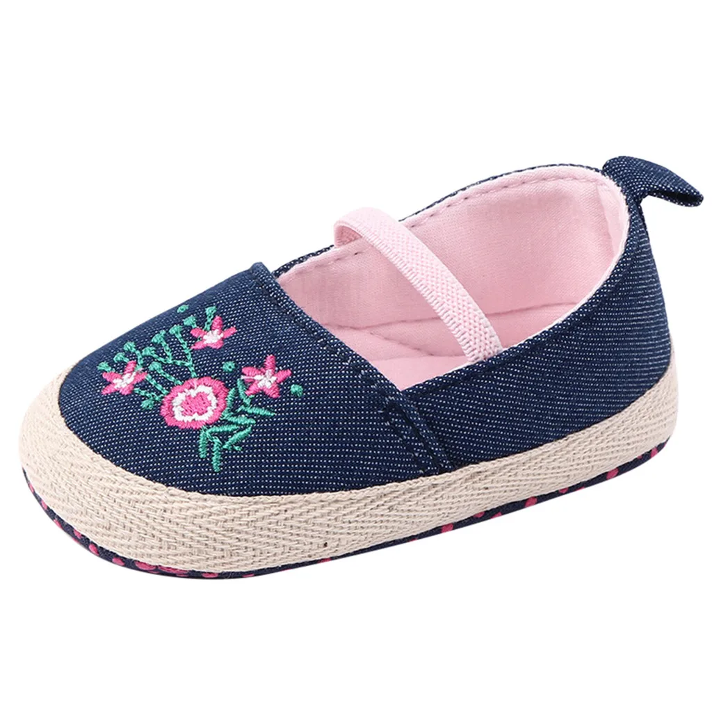 Обувь для маленьких девочек с эластичной лентой; удобная однотонная обувь для первых шагов с цветочным узором; детская обувь