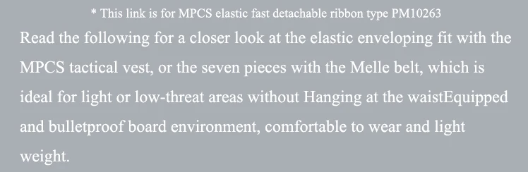 Примечание: ремень подходит для тактического жилета MPCS, или модуля адаптера шарнира, с системой Molle в задней части. Он подходит для окружающей среды, где нет необходимости устанавливать оборудование и пуленепробиваемые доски на талии в светлых и низкоопасных местах. Удобно и легко носить.
