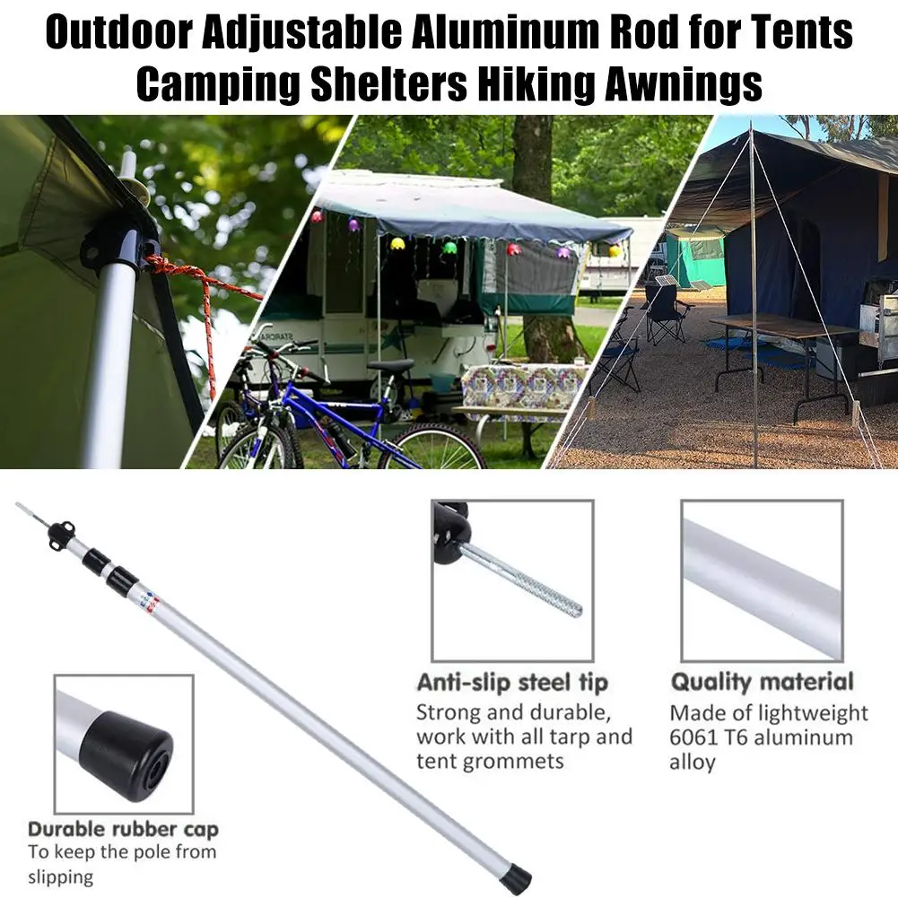 Телескопическая конструкция делает его регулируемым. Регулируемая штанга растягивается от 35,44 до 90,56 дюймов, что позволяет вам растянуть палатку или брезент.