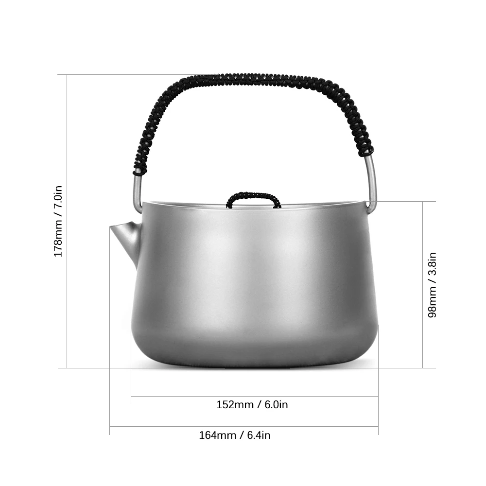 Этот чайник изготовлен из материала титаниум, легкий и устойчивый к коррозии, он безвкусный и без запаха, идеально подходит для домашнего и наружного использования.