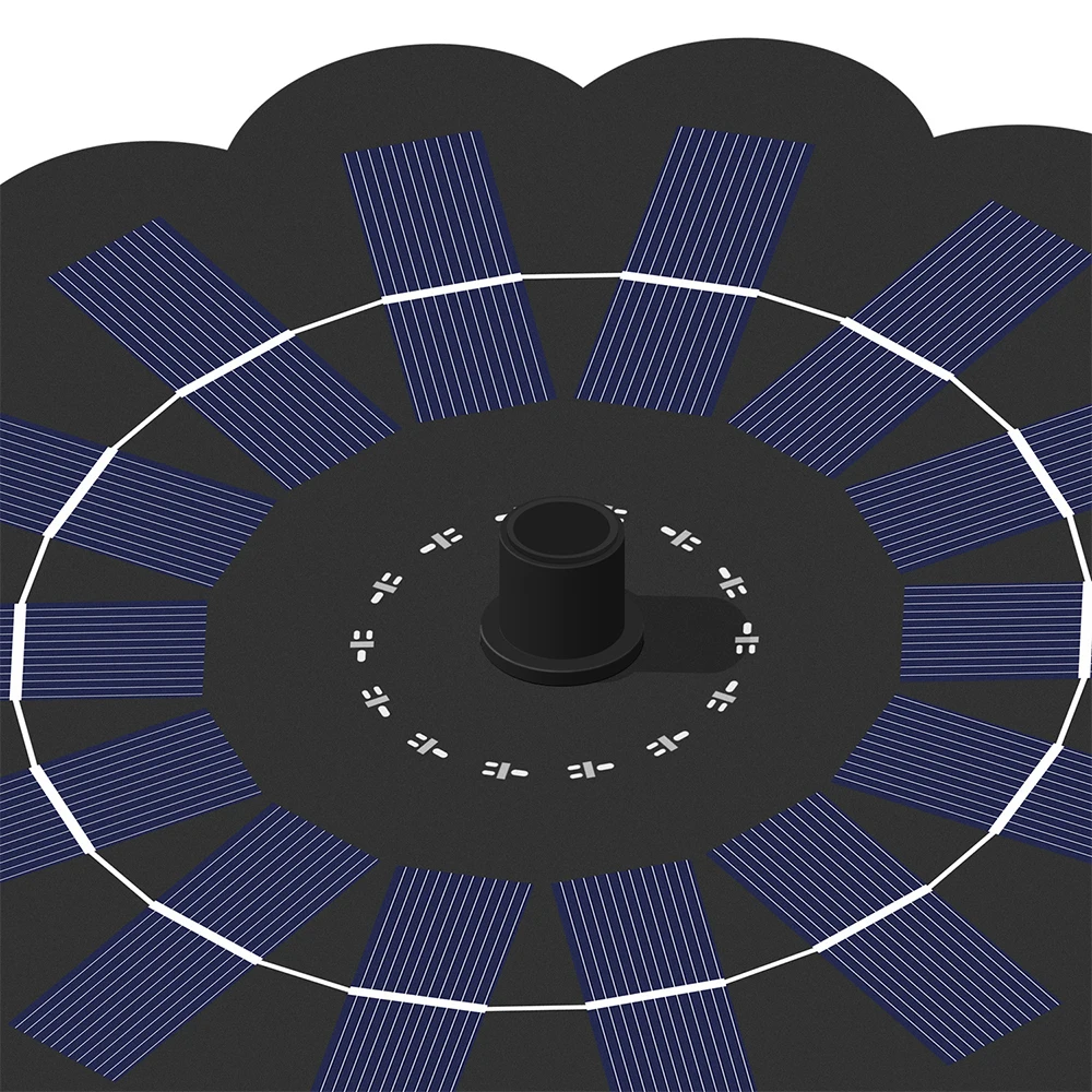Solar-powered bird bath fountain pump with the intelligent chip technology, still working when solar panel is partially covered.
