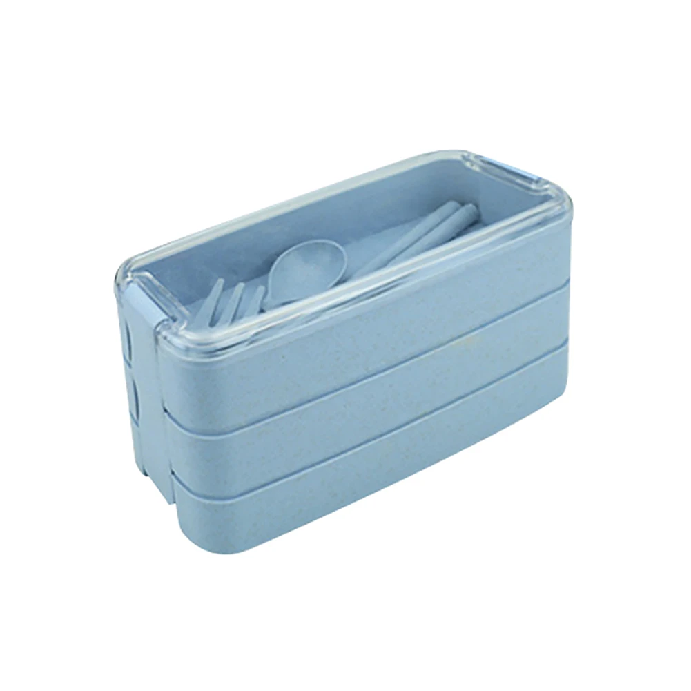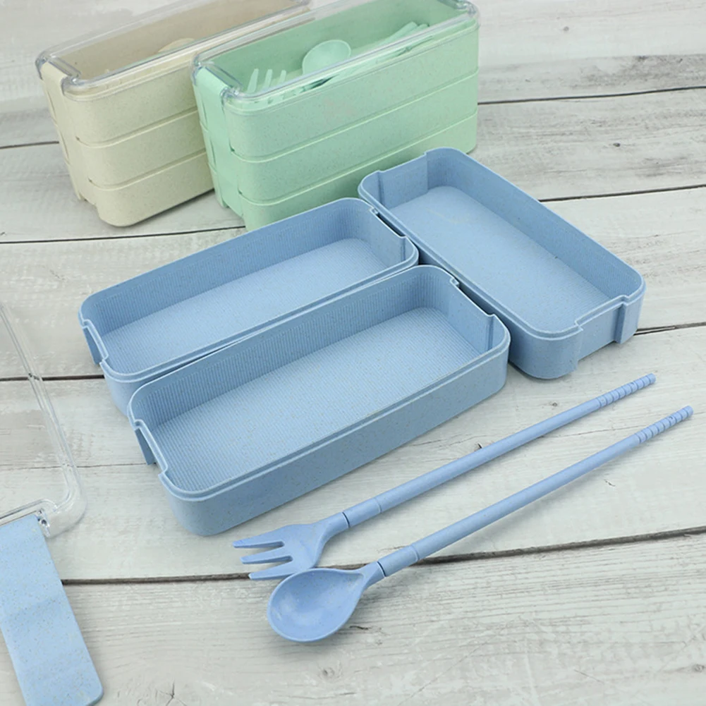 900 мл 3 Круглый Ланч-бокс бэнто Коробки для обедов, ложки, вилки, пшеничная солома Еда Хранения Чехол Контейнер