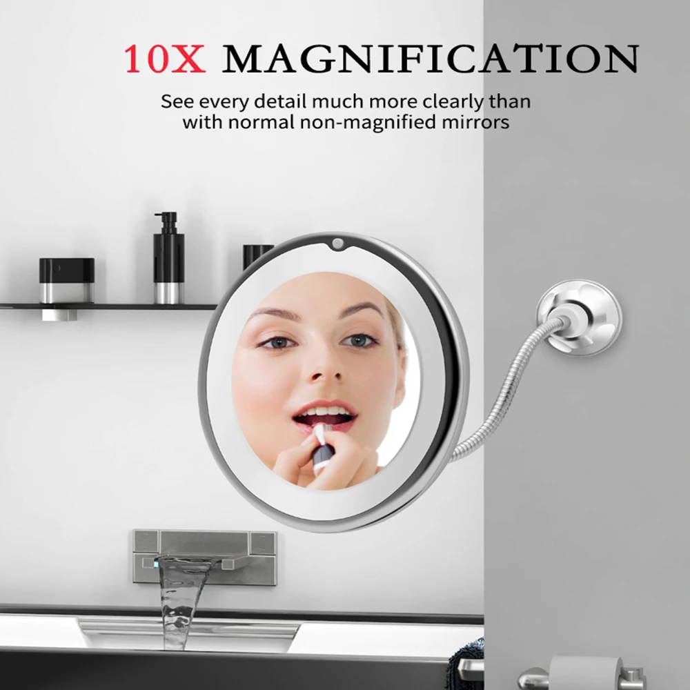 10X увеличительное зеркало для макияжа, вращение на 360 градусов, мое гибкое зеркало, складное косметическое зеркало, светодиодный светильник, инструменты для макияжа