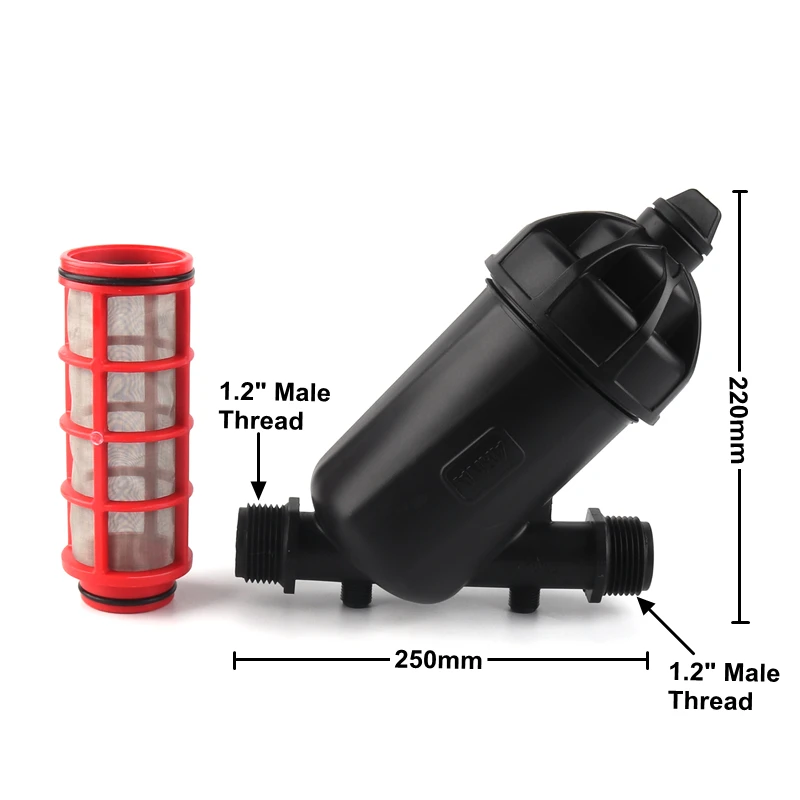 Название продукта: фильтр Материал: Пластик Размеры: 1,2 дюймов Поток: 14 м ³/ч Рабочее давление: 1-8 кг Сетка: 120 сетка