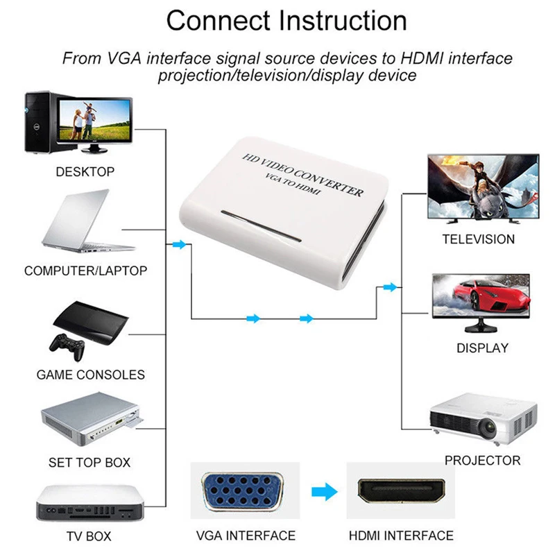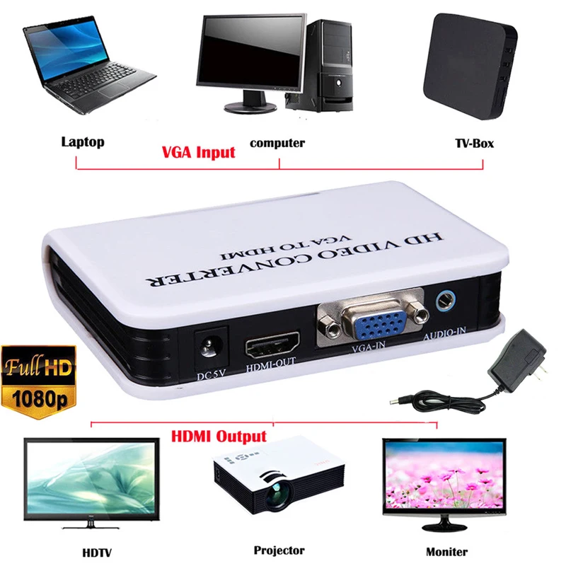 1. Можно конвертировать VGA и аудио сигнал в формат HDMI. |
