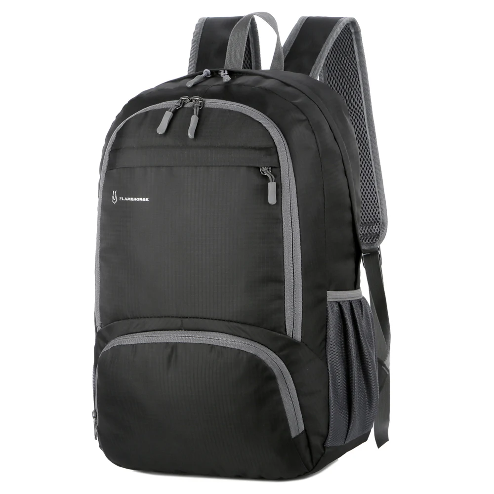 Изготовлен из высококачественной нейлоновой ткани, рюкзак легкий и водостойкий. Он имеет основное отделение, 3 передних кармана на молнии и 2 боковых сетчатых кармана, чтобы держать ваши предметы в форме. Он складывается в компактный размер для удобного хранения, отлично подходит для кемпинга, пеших прогулок, езды на велосипеде, путешествий и других видов активного отдыха.