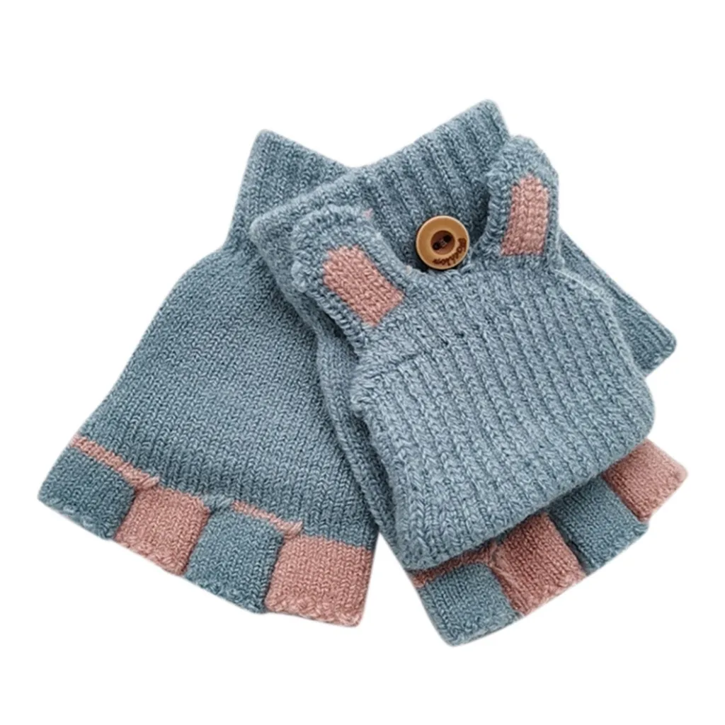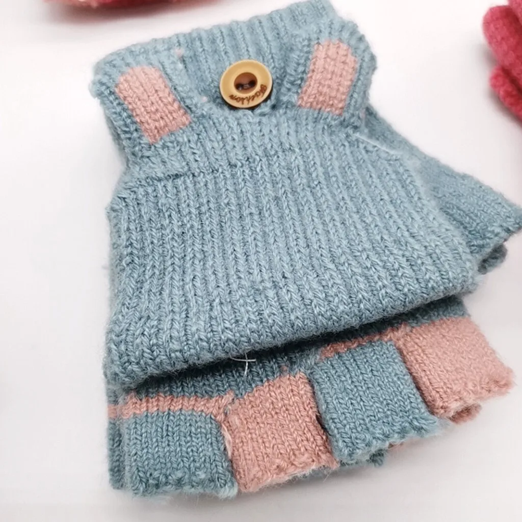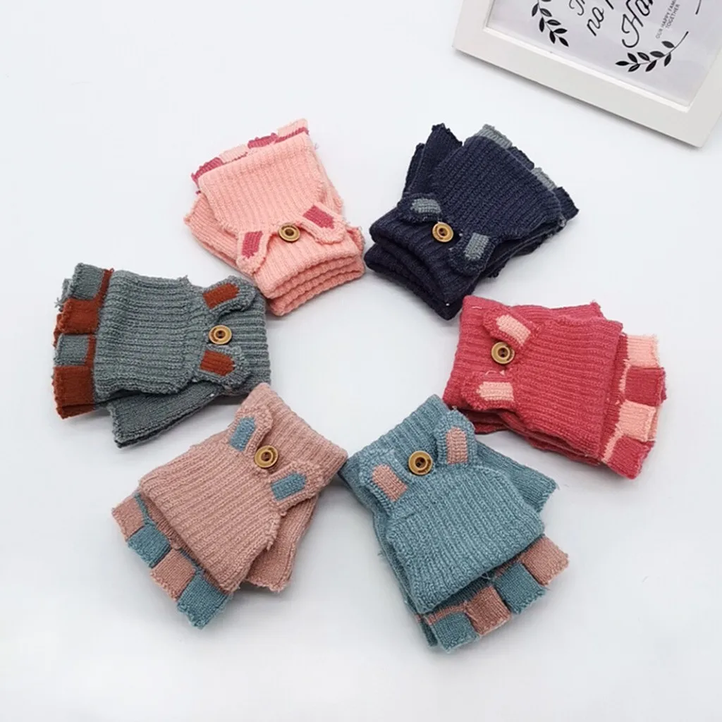 Children Kids Winter Warm Knitted Convertible Flip Top Fingerless Mittens Gloves