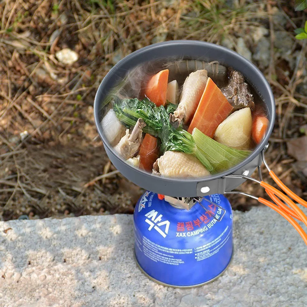 Обязательная Упаковка: Этот набор для приготовления пищи на открытом воздухе предназначен для 2-3 человек. Подходит для кемпинга, пеших прогулок, альпинизма, пикника и других видов активного отдыха.