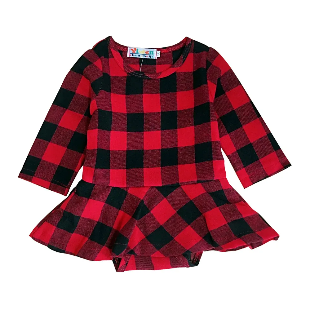 Новое Новогоднее детское праздничное платье с оборками для девочек буйвола с принтом в клетку; Платье-комбинезон платье принцессы с длинным рукавом Вечерние новый год детская одежда верхняя одежда