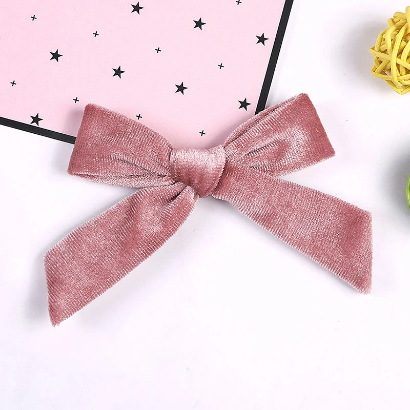Однотонная мягкая бархатная повязка на голову с бантом для маленьких девочек; Заколка для волос