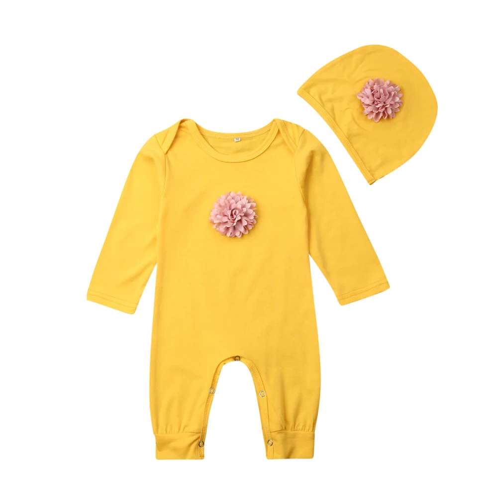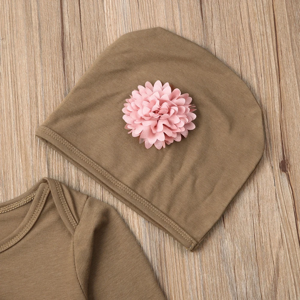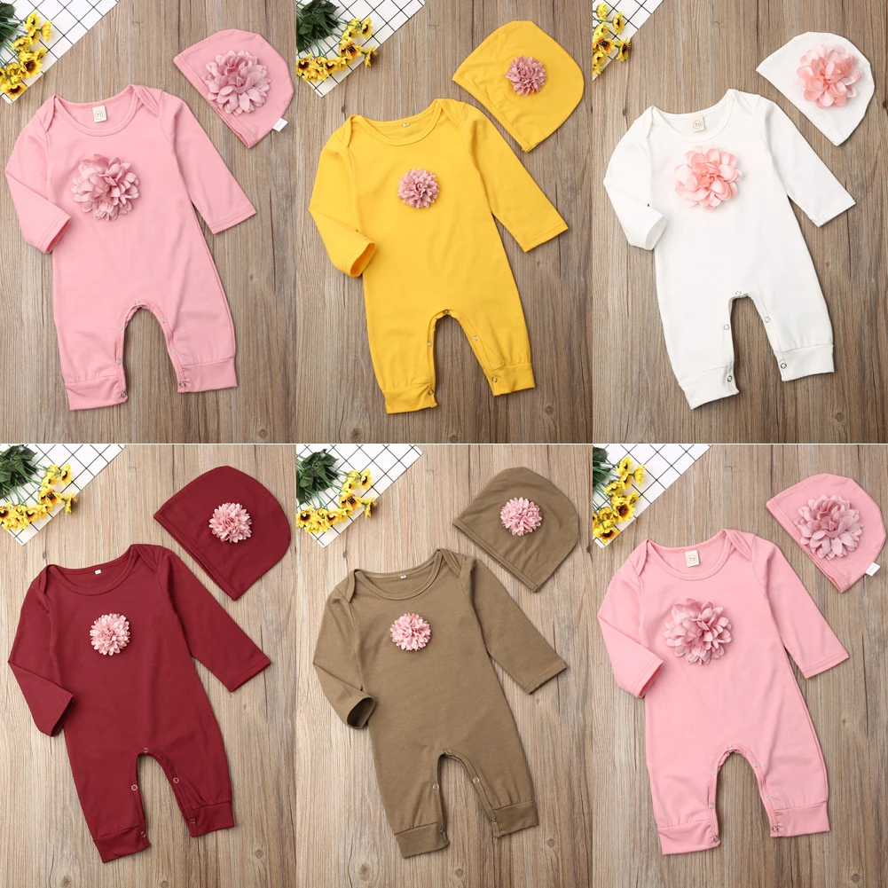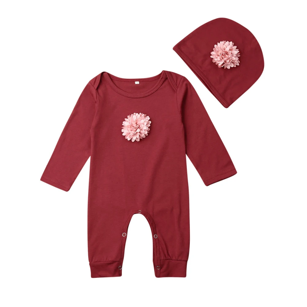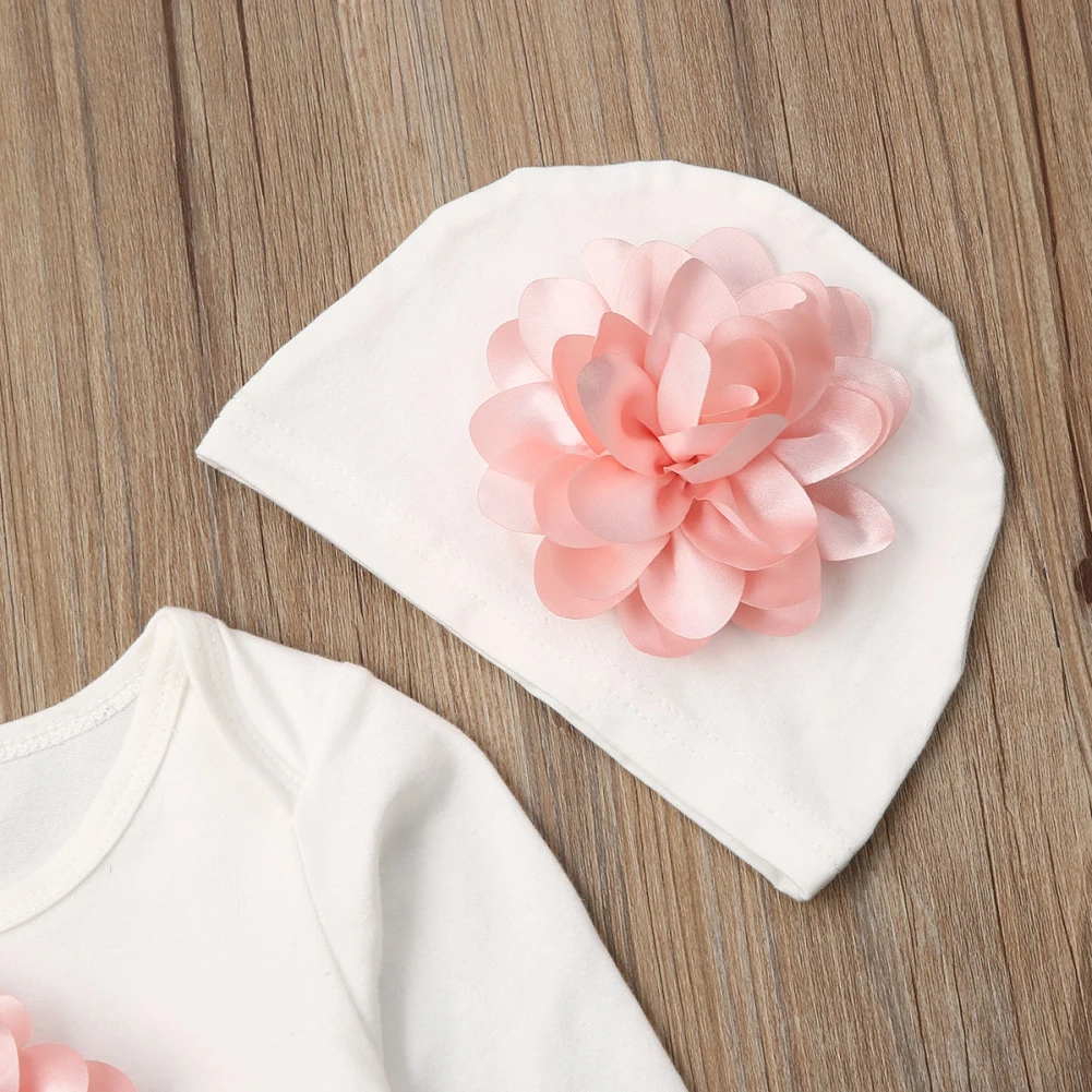 AU/комплект из 2 предметов; Одежда для новорожденных девочек; комбинезон с объемным цветочным рисунком; боди; шапка