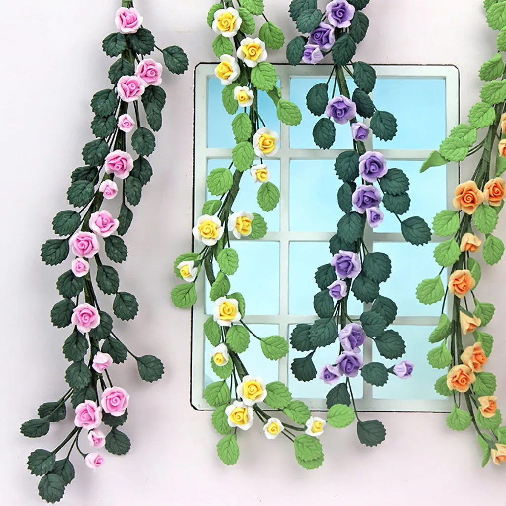 Искусственный 1/12 кукольного дома в виде вьющегося стебля с цветами миниатюрный изысканный Противоударная заданяя Декор