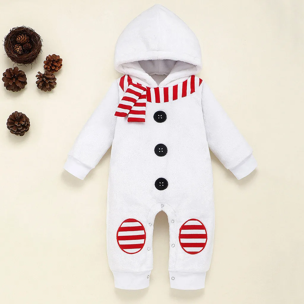 Детский флисовый комбинезон с рисунком снеговика на Рождество для маленьких мальчиков и девочек; Комплекты с шарфом