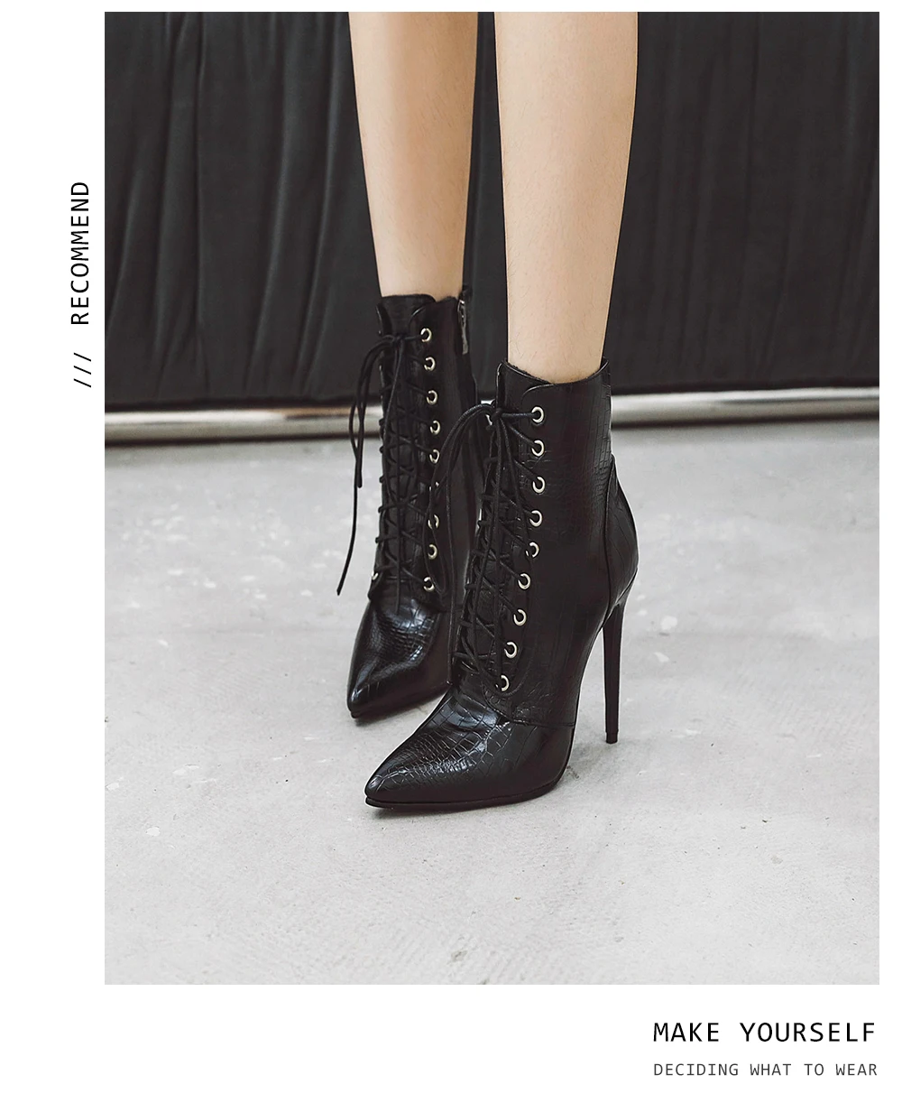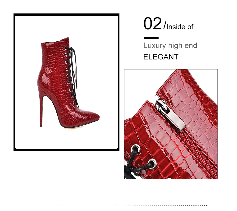 BESCONE/женские ботильоны Сезон Зима Цвет Красный Обувь на тонком каблуке с острым