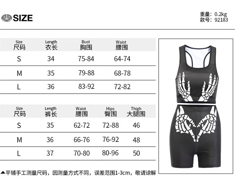 Для женщин из 2 частей Сексуальная кость руки на Хэллоуин Скелет Печатный укороченный топ шорты брюки набор