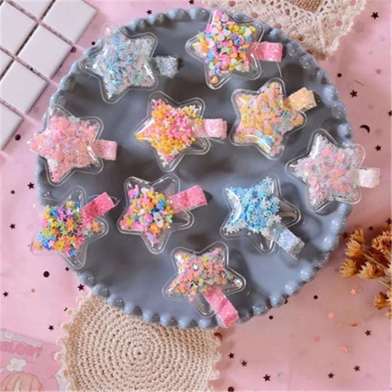 Прозрачные блестки ПВХ заколки для волос пески пять звезд любовь милые девушки Duckbill клип