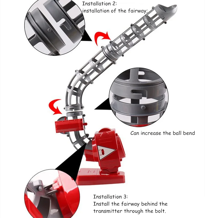 Установка Примечания: 1: Установите передатчик к основанию и услышите щелчок. 2: Установка фарватера; 3: Установите Фарватер за пусковой установкой через болт