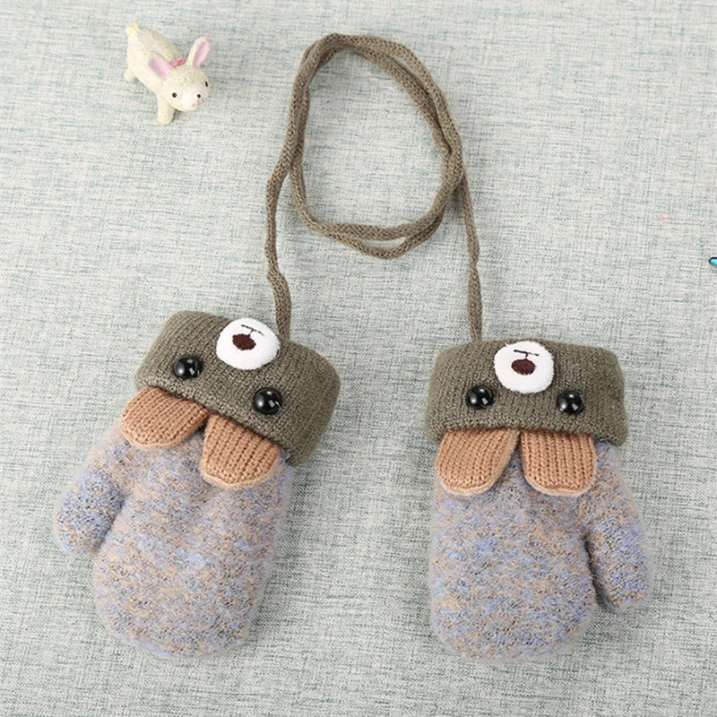 Новый От 0 до 3 лет с рисунком милого медведя из мультфильма для маленьких перчатки Зимняя вязаная одежда для новорожденных варежки бархатные толстые детские футболки с надписью «Keep палец теплый