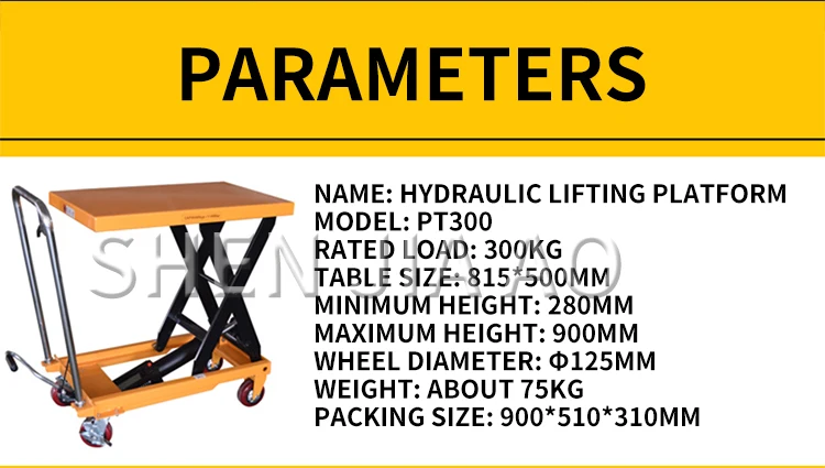 PT300 Мобильная гидравлическая подъемная платформа ручной складной ножничный грузовик