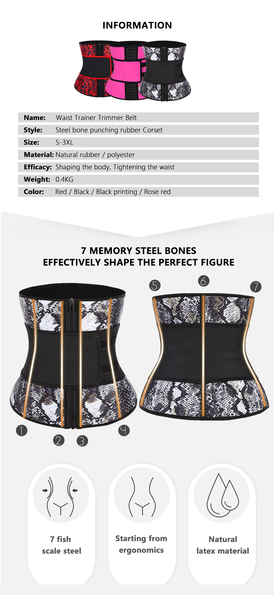 Тренажер для талии, триммеры, пояс для уменьшения фигуры, формирователь для похудения, пояс из неопрена, Корректирующее белье для живота, 7 стальных костей, пояс