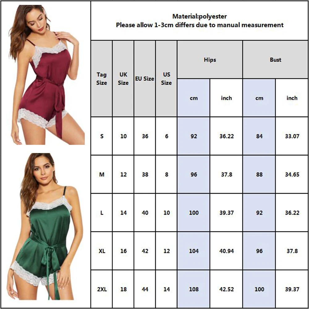 Особенности: имитация Шелкового нижнего белья, сексуальное кружево, женские пижамы Состав основной ткани: полиэстерПопулярные элементы: кружево, прострочкаПодходит для случаев: ежедневных поездокСтиль: пикантная обувьДетали: кружевная строчкаДлина: Ultra short ThrowТип талии: средняя талияВерсия: Пижама-комбинезонРисунок: однотонныйСезон: все сезоныРазмер: S, M, L, XL, 2XLМетод стирки: ручная стирка, машинная стирка Инструкции по уходу: Перед использованием необходимо постиратьХолодная Вода стирка в стиральной машинеНе отбеливатьНе сушитьЕстественная сушка Количество в упаковке: 1 xJumpsuit Об этом проекта (Наша цель-показать вам правильную информацию): 1. Сравните с вашими деталями перед покупкой.2. Из-за разницы в цвете между различными компьютерами, фактический цвет продукта может немного отличаться от изображения.3. Из-за ручного измерения допускается погрешность в 1-3 см4. Из-за процесса стирки ткани может возникнуть небольшая Хроматическая аберрацияСпасибо за понимание! Таблица размеров: