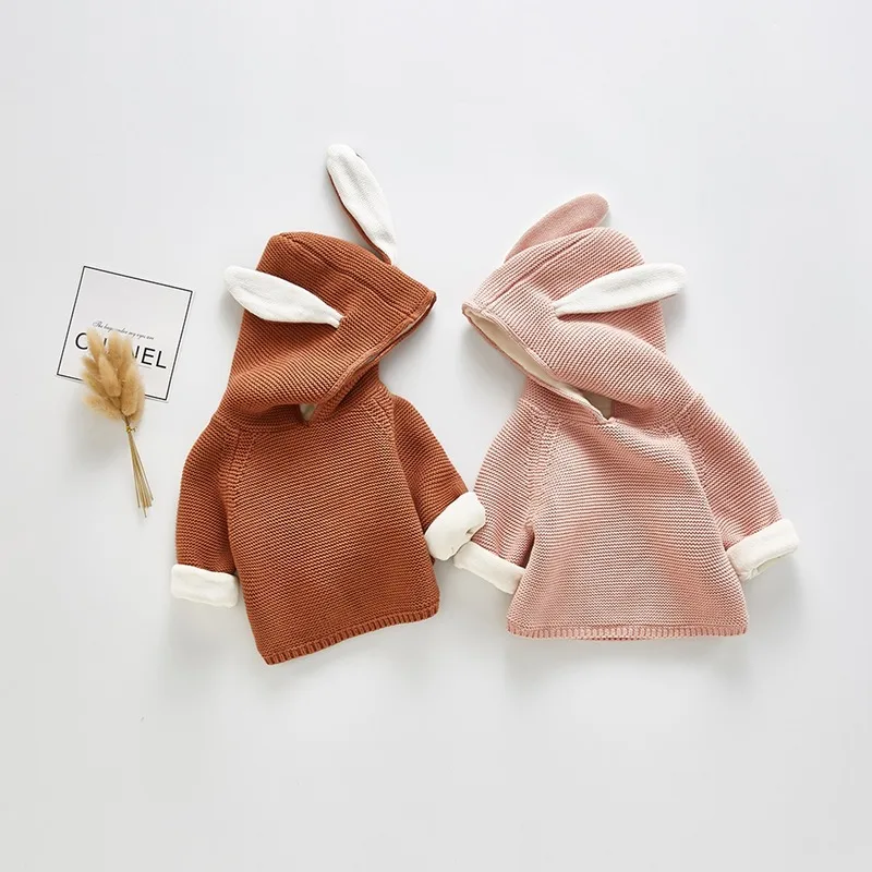 Коллекция 2019 года, осенне-зимний свитер для мальчиков и девочек Детский кардиган с бархатной подкладкой и заячьими ушками, зимняя одежда для маленьких девочек