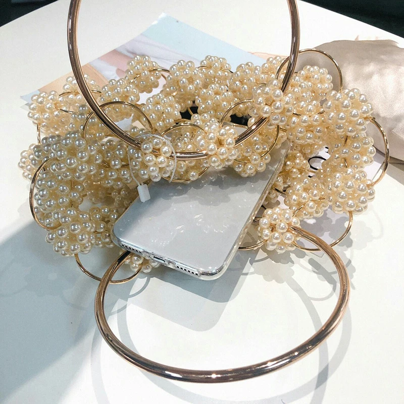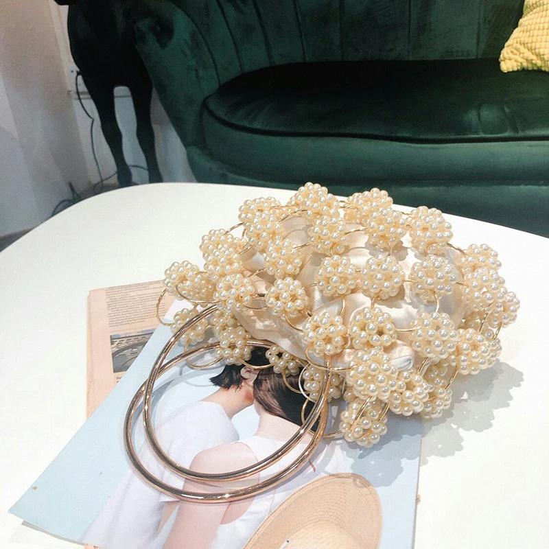 Женская вечерняя сумочка с перламутровыми цветами, Роскошная сумочка ручной работы в Корейском стиле с кольцом и ручкой, Золотой вечерний клатч с бусинами