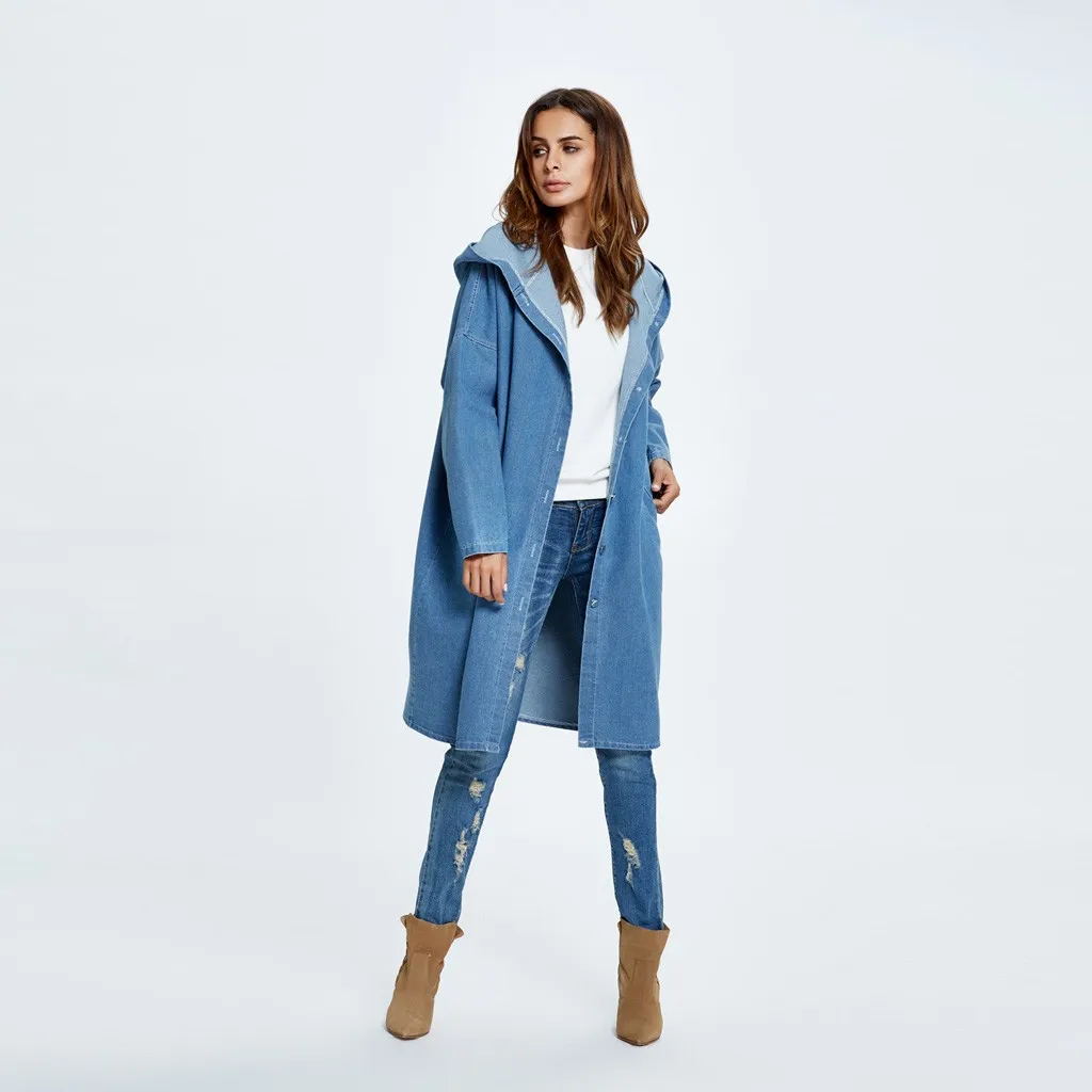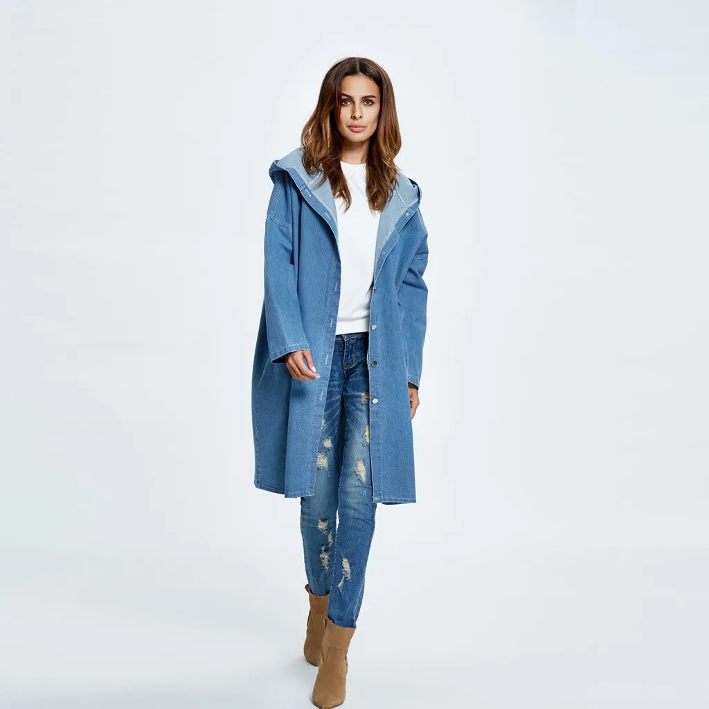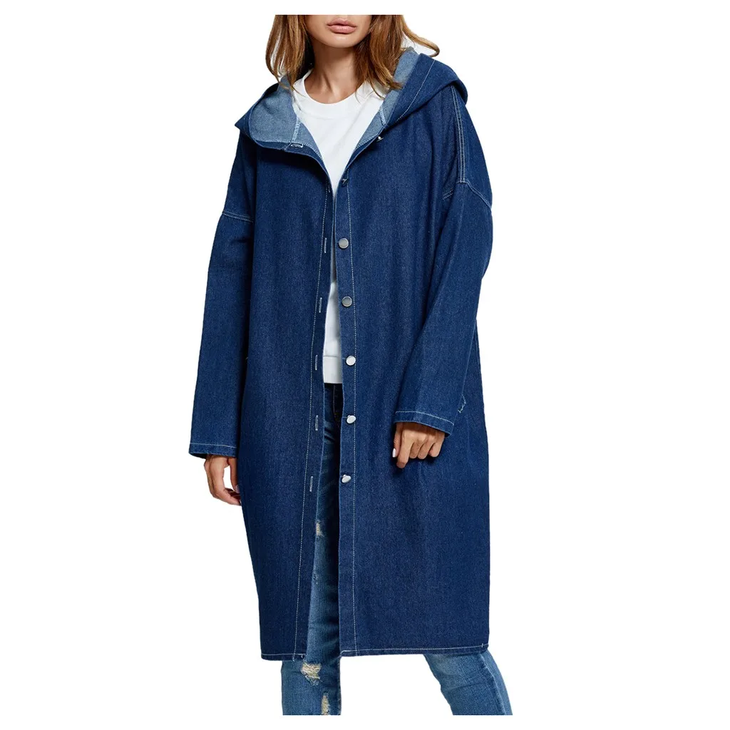 Женская Повседневная джинсовая куртка с длинным рукавом, длинное джинсовое пальто, верхняя одежда
