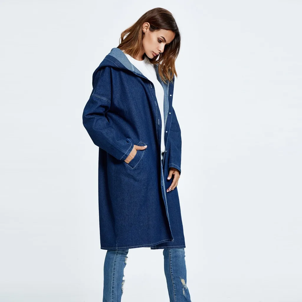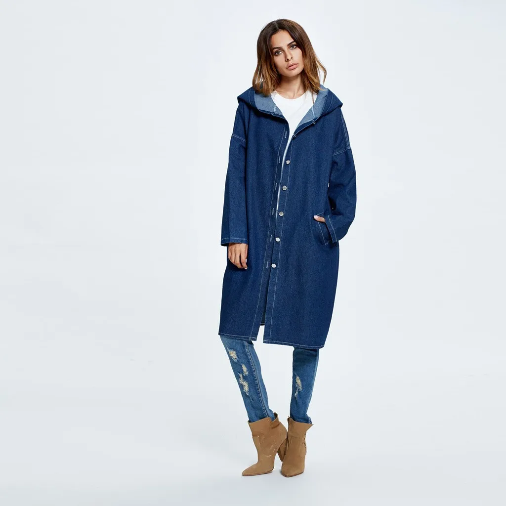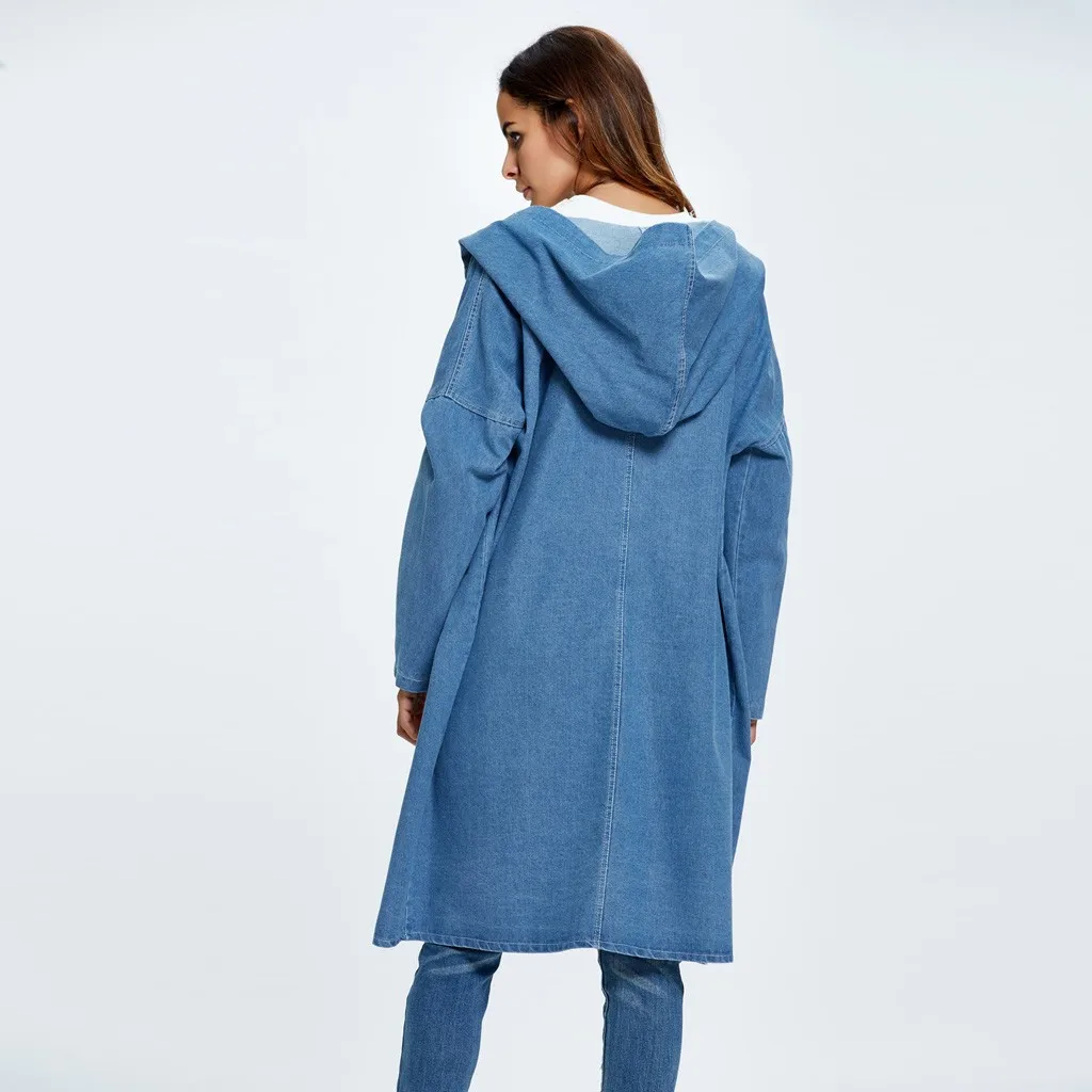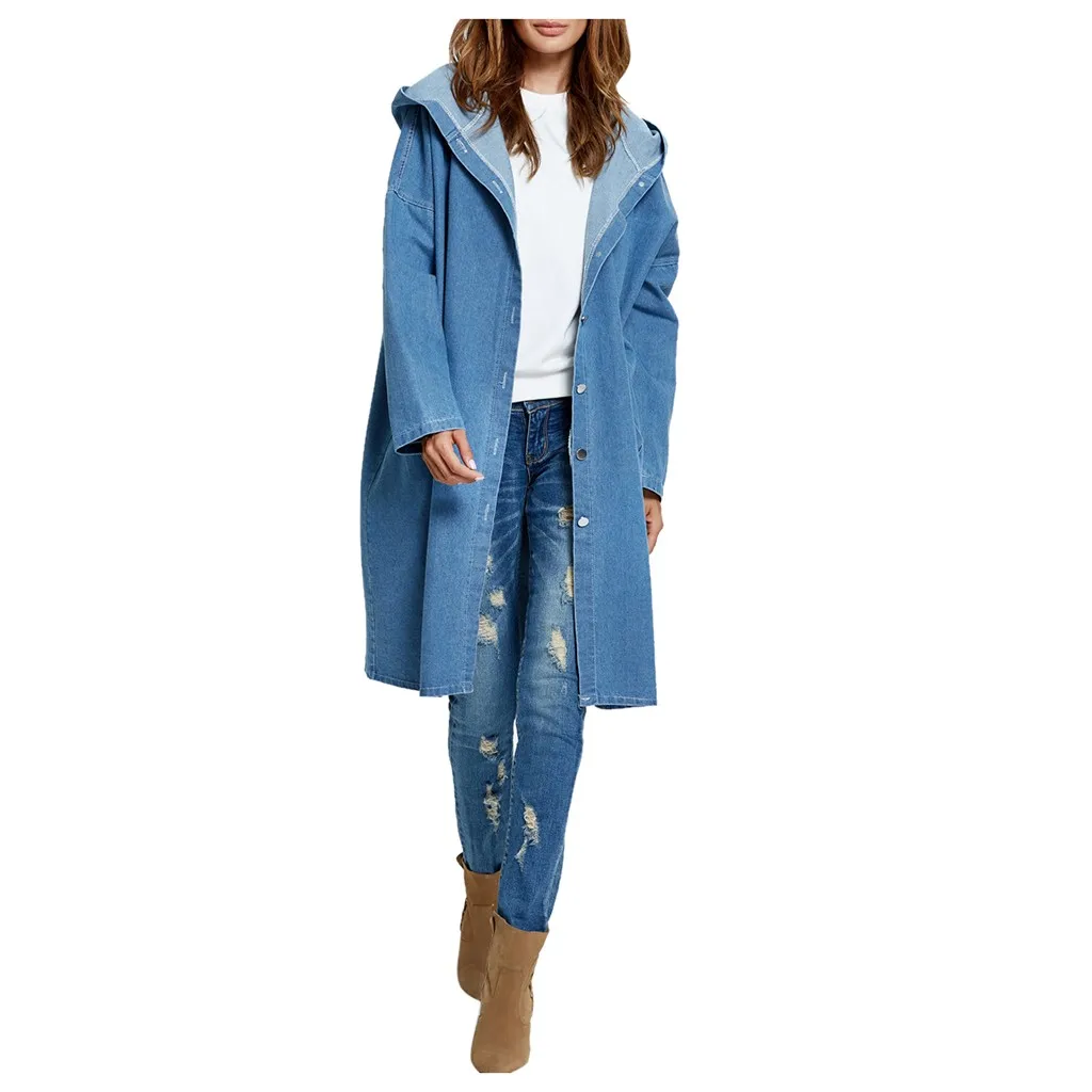 Женская Повседневная джинсовая куртка с длинным рукавом, длинное джинсовое пальто, верхняя одежда