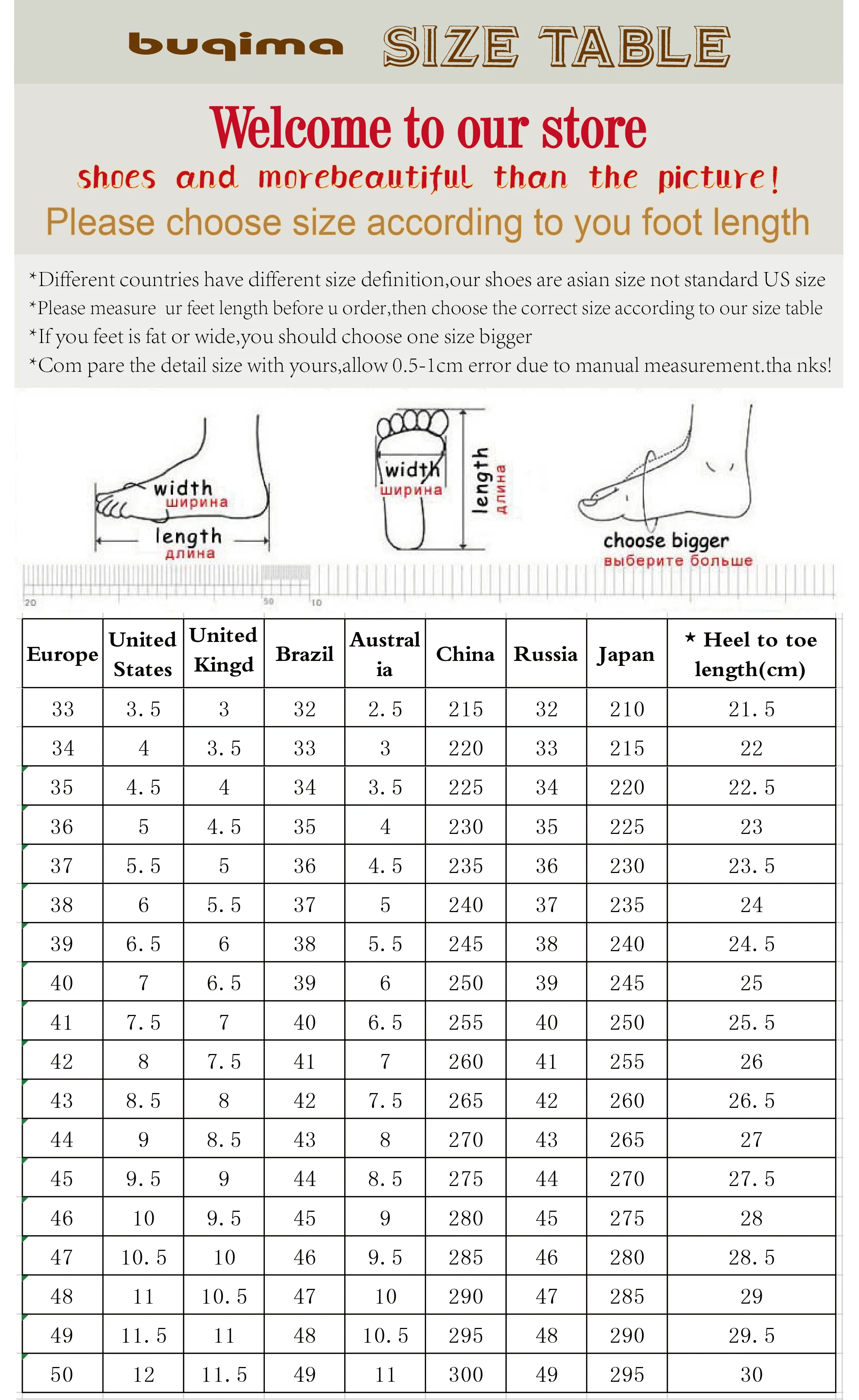 Таблица размеров