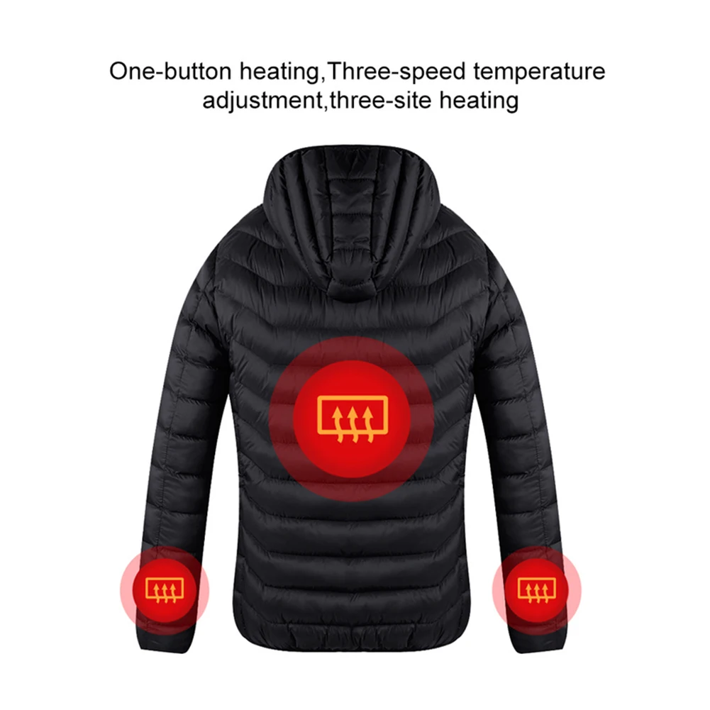 Мужские и женские куртки с подогревом, уличная жилетка, пальто с USB электрической батареей, с длинными рукавами, куртки с капюшоном, теплая зимняя теплая одежда для катания на лыжах (внешний аккумулятор не входит в комплект)