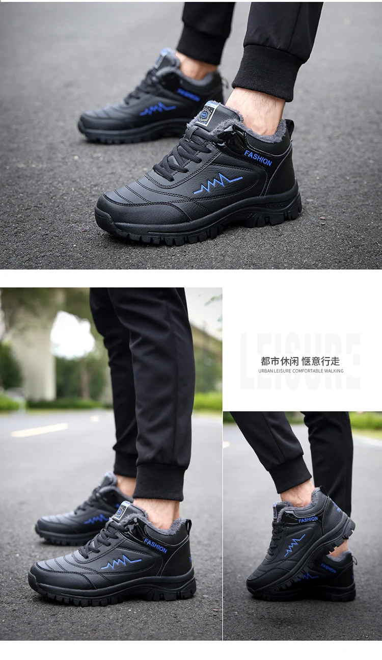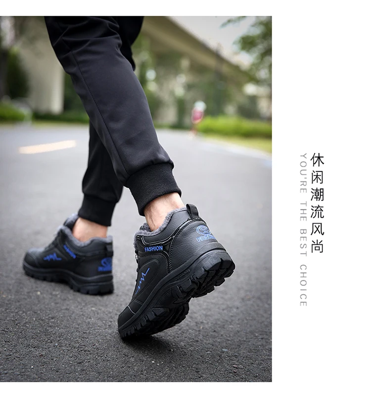 Зимние уличные мужские треккинговые ботинки из кожи с толстым мехом; Охотничьи водонепроницаемые ботинки; Мужские кроссовки для альпинизма; Треккинговая обувь + мужская обувь Верх: кожа Подошва: резина Размер: 39-45