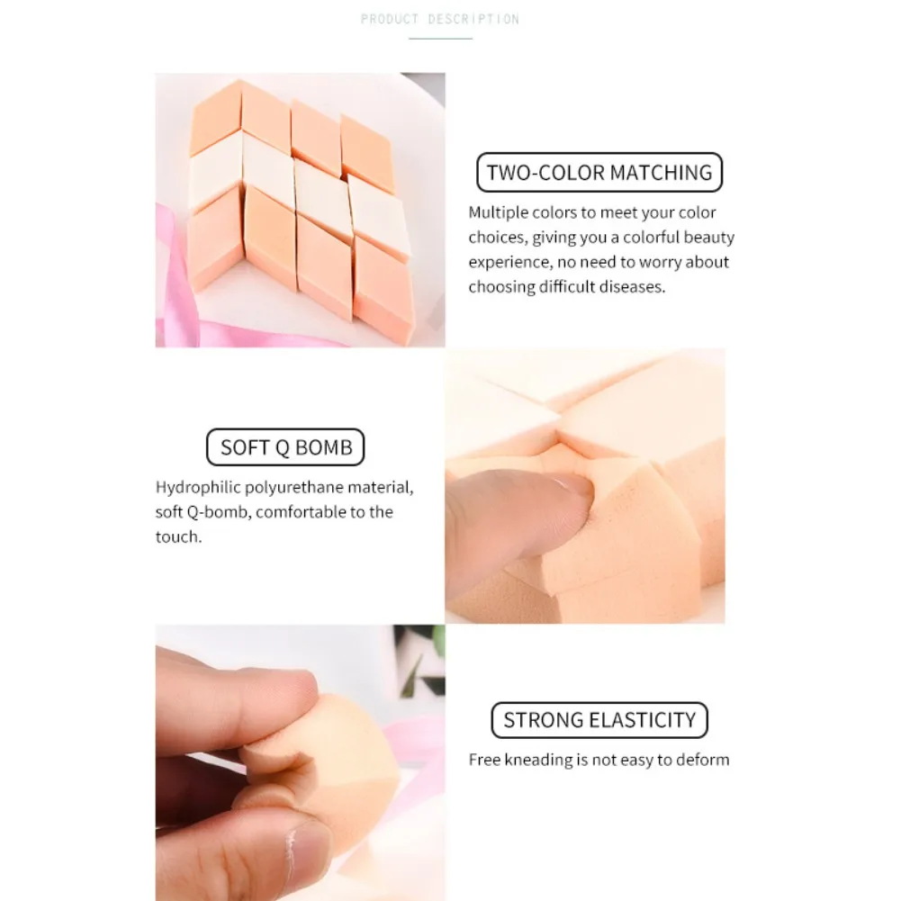 1. Мягкий Q-bomb: гидрофильный полиуретановый материал, мягкий Q-эластичный, удобный на ощупь. 2. Сильная эластичность: свободное разминание не легко деформируется. 3. Многоугольник с тонким углом: он может модифицировать нос и угол глаза. 4. Возможность настроить два-подбор цветов: много цветов, которые подойдут к вашему уникальному укажите, какой цвет вам нужен. 5. Без примесей, безопасный и без запаха с латексом SBR. 6. Сухая и влажная вода двойного назначения, быстро впитывается, подходит для всех видов сухого и влажного порошка.