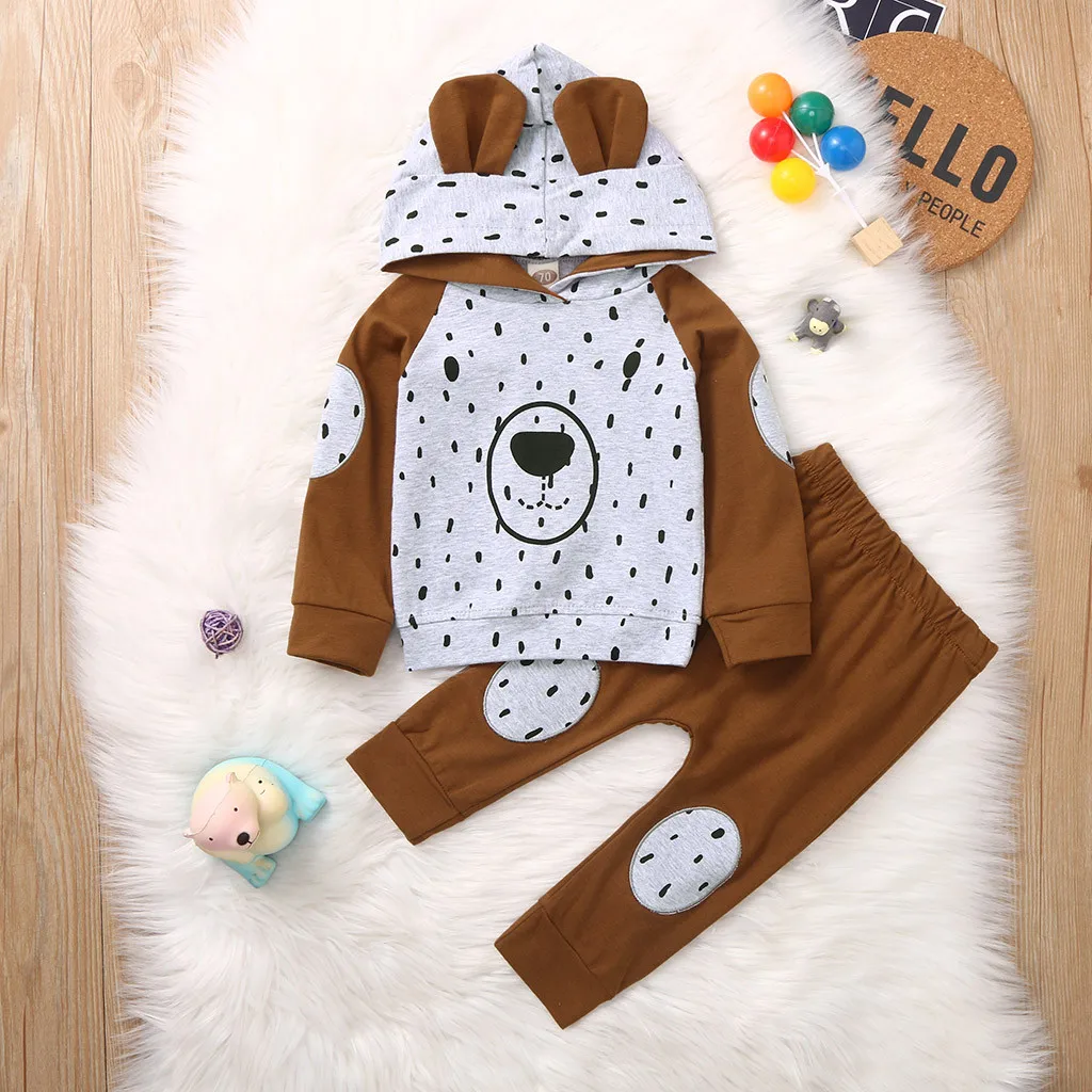 Пуловер с рисунком для маленьких мальчиков и девочек; Футболка с капюшоном; Топ + штаны; Комплекты одежды