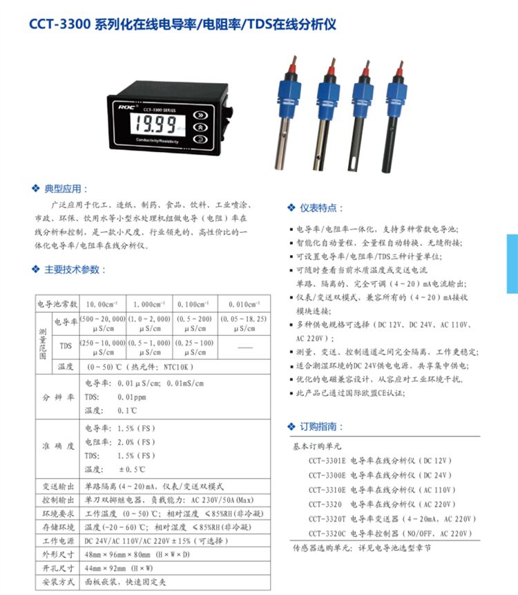Модель 1: CCT-3320 (полная функция)Модель 2: CCT-3320V (нормальная функция отображения)Модель: 3: CCT-3320T (4-20MA выход сигнала)Модель: 5: CCT-3300E (инструмент/передача двойного режима)Модель: 6: CCT-3310E (AC110V)Модель: 7: CCT-5320E (дисплей 4-20ma переключатель)Модель: 8: CCT-7300 (AC24V)Модель: 9: CCT-8301A (полностью автоматическая)Модель 10: CCT-8320 (одноступенчатый фильтр обратного осмоса + 2-полосная проводимости)Модель 11: PH/ORP-3520 (изолированный выход 4-20 мА)Модель 12: PH/ORP-5520 (Изолированная 4-20ma)Модель 13: PH/ORP-7500Модель 14: PH/ORP-8500AМодель 15: ROC-2015 (может заменить электронный контроль)Модель 16: ROC-2315 (вместо 7320)Модель 17: ROC-7100/7200 (без электродов)Модель 18: FCT-8350 (расходомер)Модель 19: CCT-2300 (портативный Лабораторный Измеритель проводимости)Модель 20: лабораторный ph-метр POT-2320)