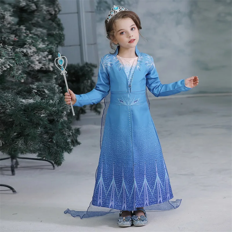 Платье Анны и Эльзы для девочек, платье для костюмированной вечеринки Elza 2 на Рождество, день рождения, платья принцессы для детей, 2019