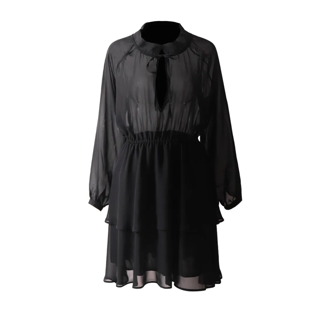 1. Особенности: модное женское платье, v-образный вырез, длинный рукав, повседневный стиль, шифон, а-силуэт, бандаж, платье.